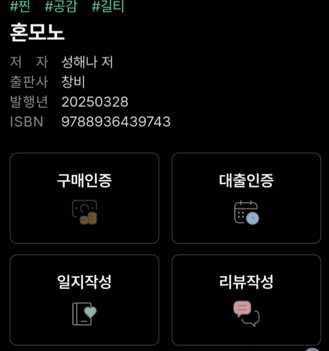 저는 최근 화제작인 『혼모노』를 구매해 독서포인트를 적립해 보았어요.