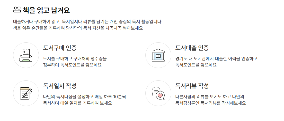 포인트는 다음과 같은 독서활동으로 적립됩니다.