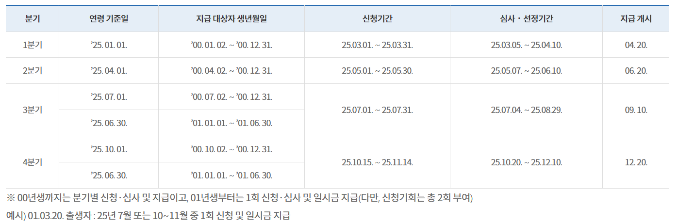 * 단 성남시는 조례폐지, 고양시는 시비 미편성으로 2025년 청년 기본소득 사업을 중단하였기 때문에 신청일 기준 주민등록 초본상 주소지가 성남시·고양시인 경우에는 청년기본소득 지급 불가