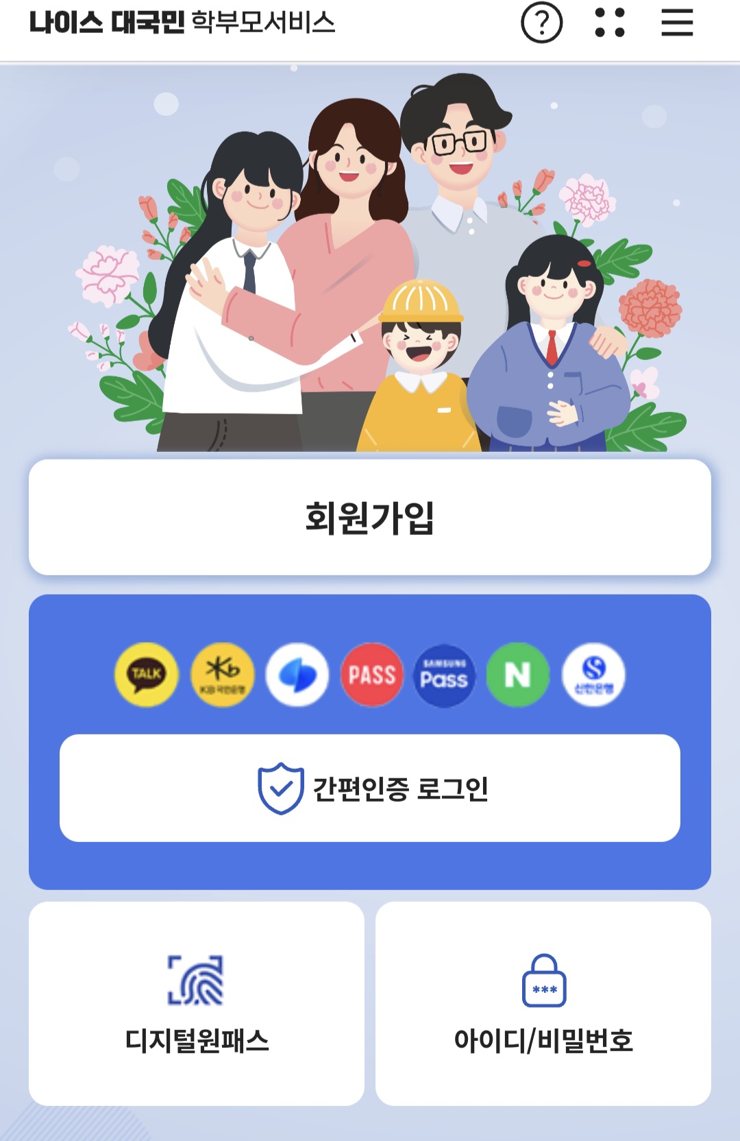 - 로그인은 반드시 학부모 또는 본인 인증으로만 가능