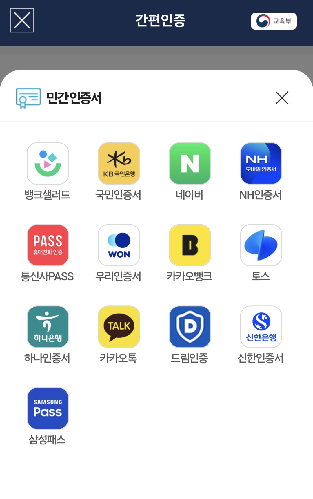| 2단계 | 간편인증 로그인 선택 (카카오톡, PASS 등) |