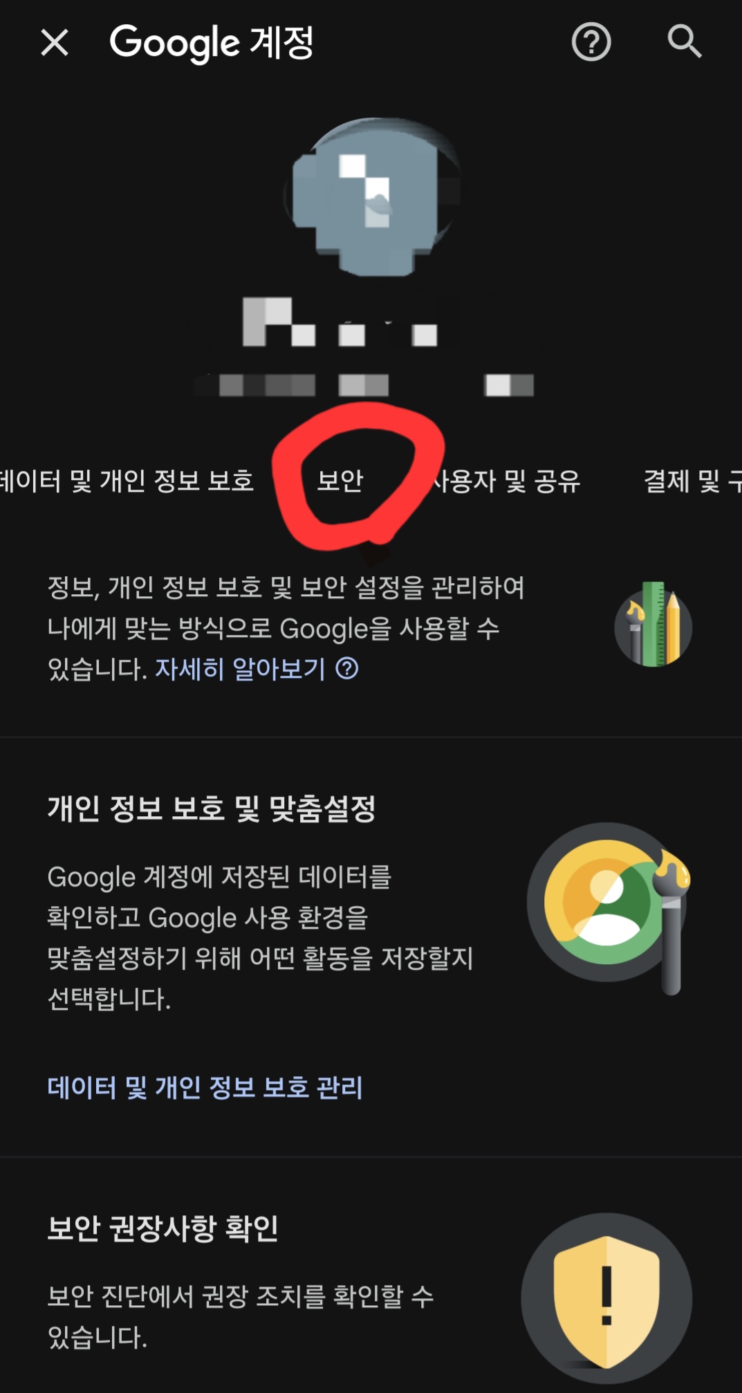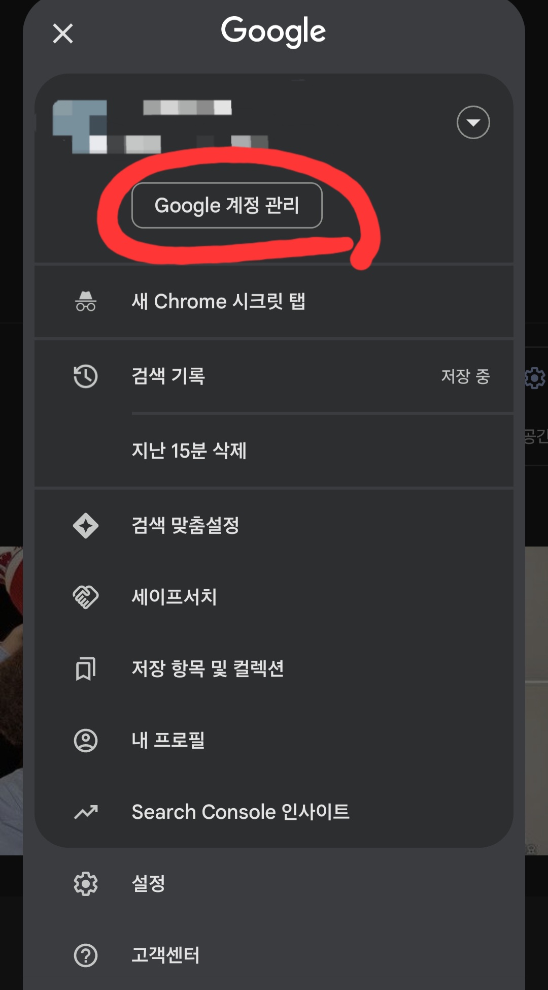 (2) '구글 계정 관리' 누르세요.