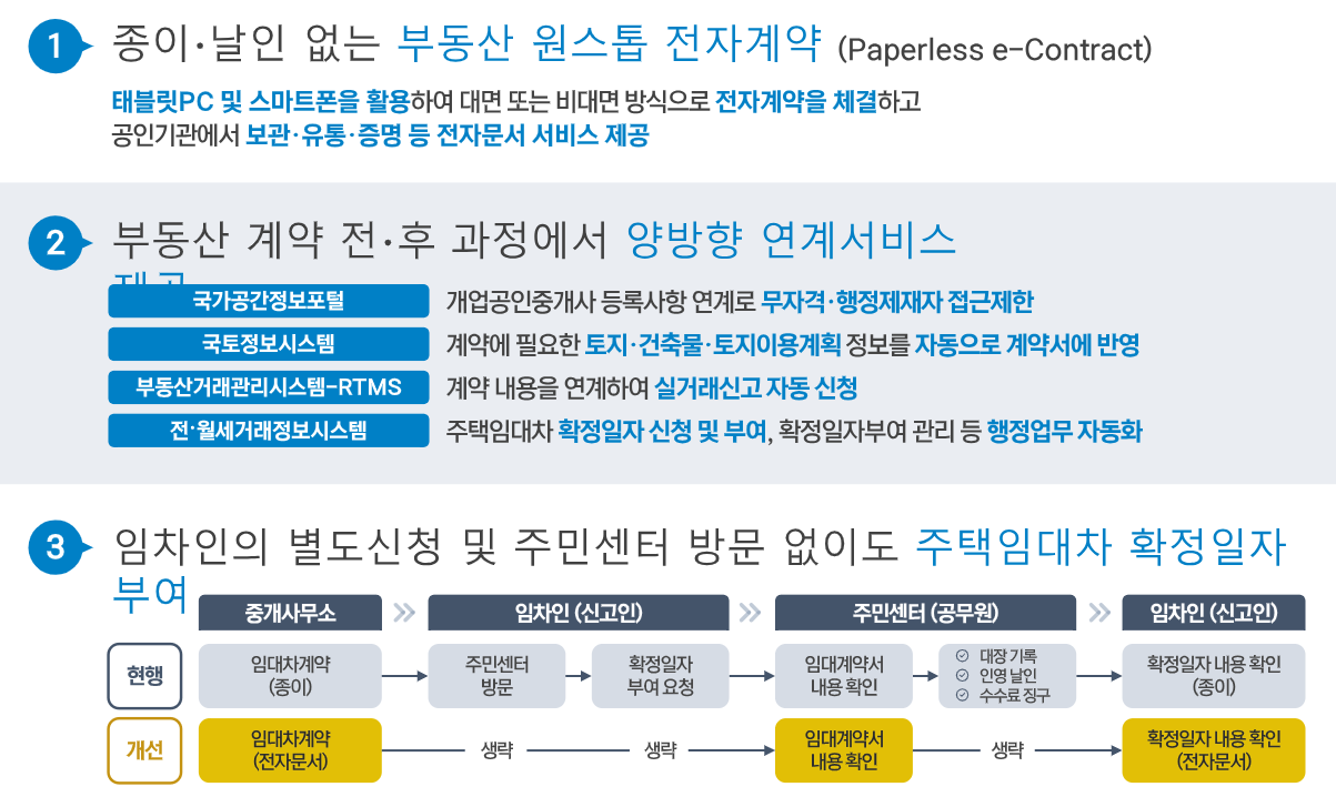 | STEP4. 전자계약시스템 | 실거래가 신고, 임대차 확정일자 자동신청 |