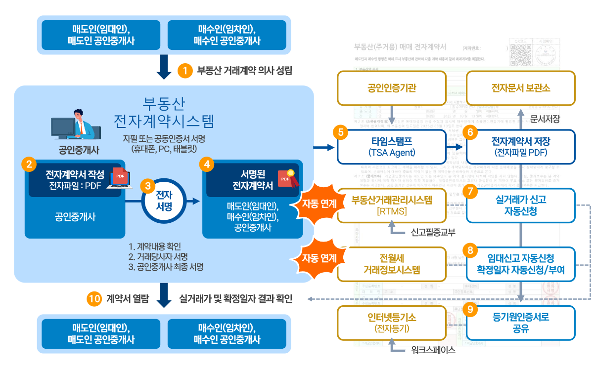 이 절차는 임대차 계약, 매매 계약 모두에 동일하게 적용되며, 계약 당사자는 스마트폰이나 PC만 있으면 언제든 참여 가능합니다.
