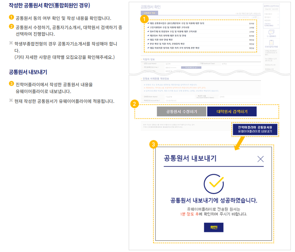 - 진학사에서 공통원서를 작성한 후 ➡️ 유웨이로 내보내기