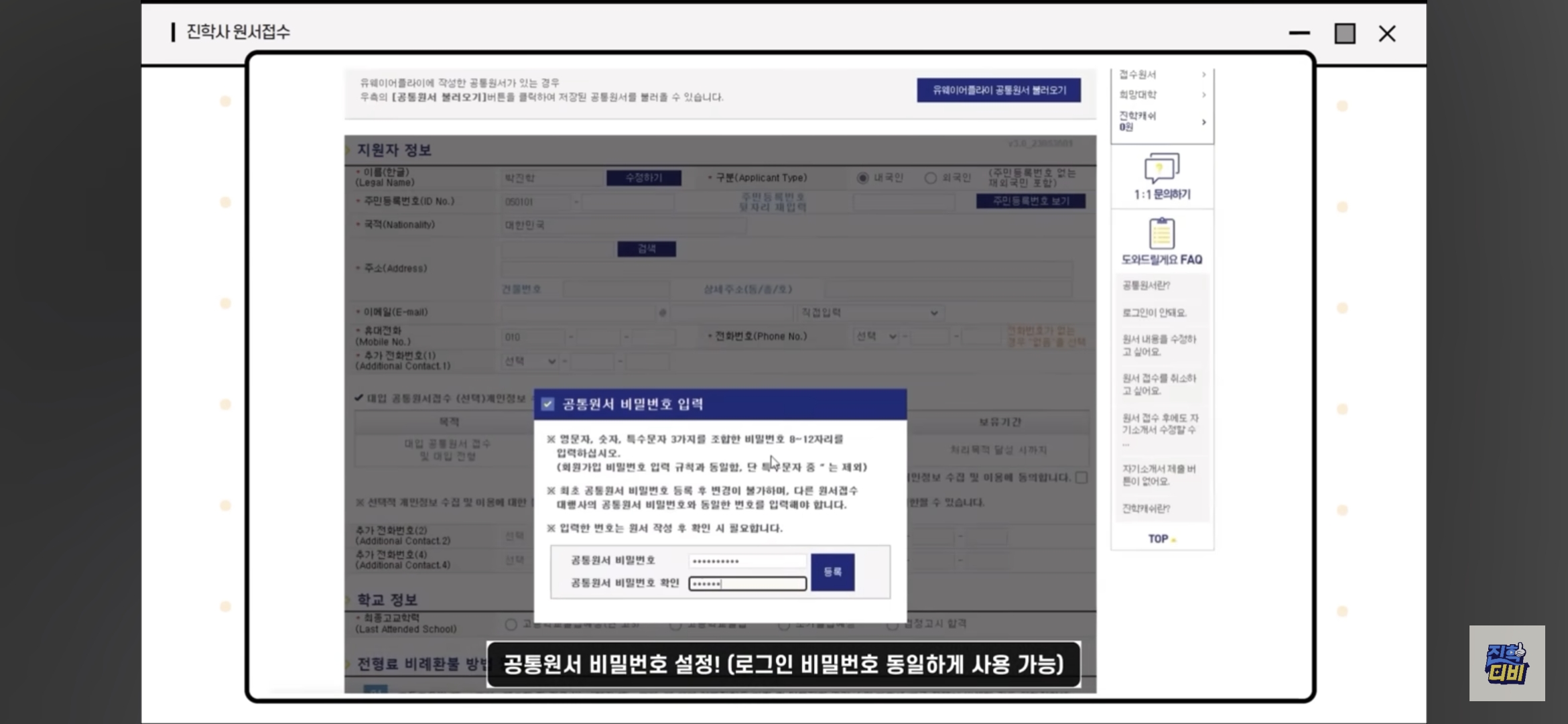 - 보안 비밀번호 설정 필수 (공통원서 불러오기 시 사용)
