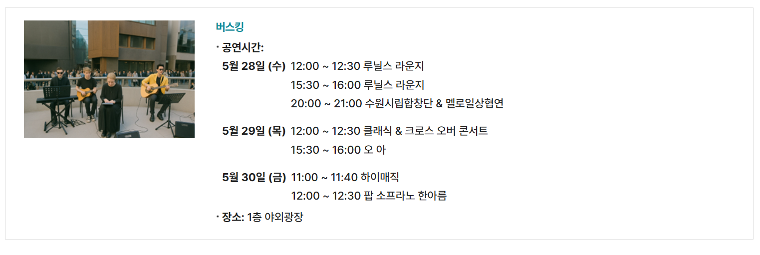 - 시민 참여 프로그램 (버스킹, 플리마켓 등)