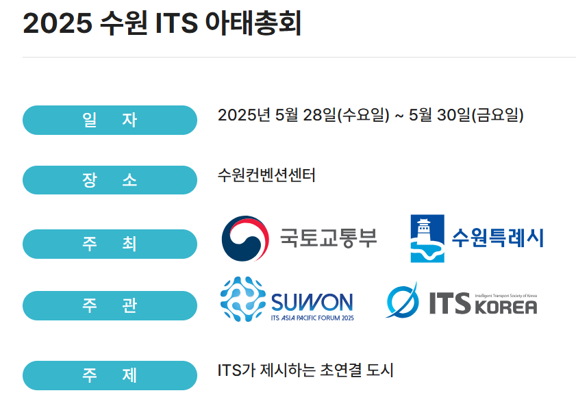이번 '2025 수원 ITS 아태총회'는 첨단 교통 기술과 문화가 어우러진 축제로, 시민들과 방문객들에게 특별한 경험을 선사할 것입니다. 관심 있는 분들은 행사 기간 동안 수원을 방문하여 미래 교통의 모습을 직접 체험해 보시길 권장합니다.
