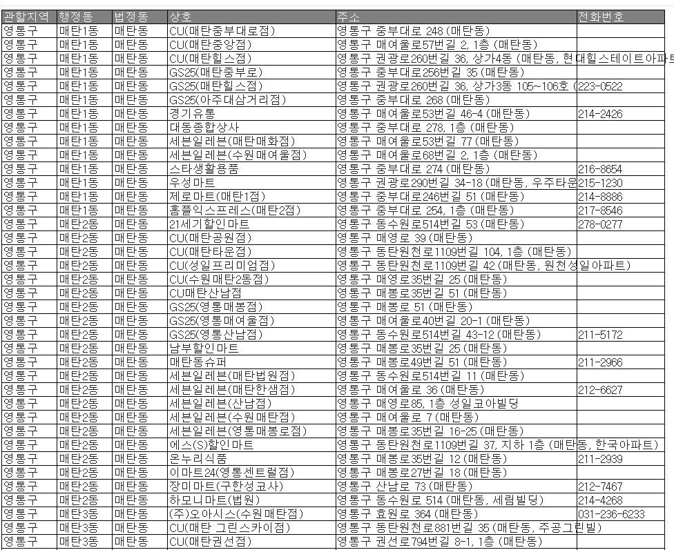 현재 수원 종량제봉투 판매처는 아래에서 구매 가능합니다.