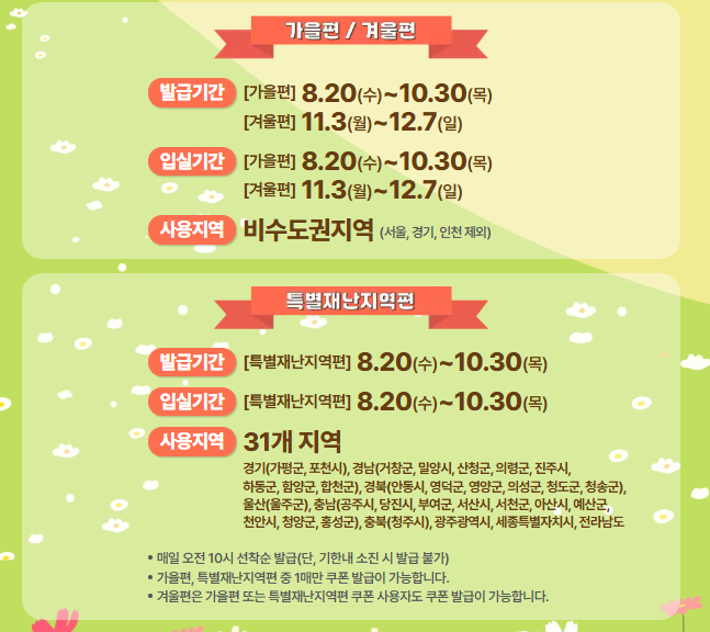| 특별재난지역편 | 2025년 8월 20일(수) ~ 10월 30일(목) |