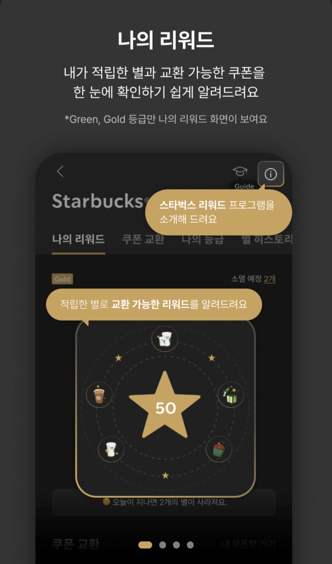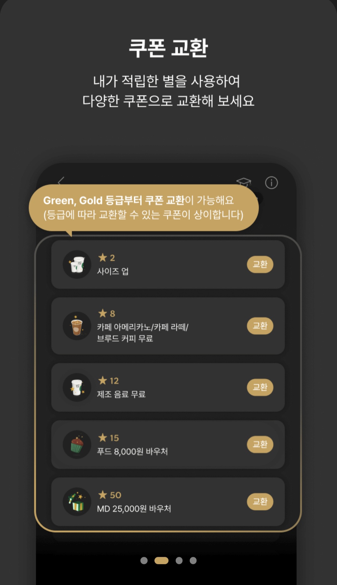 - 골드(Gold): 별 25개 추가 적립 시 전환
