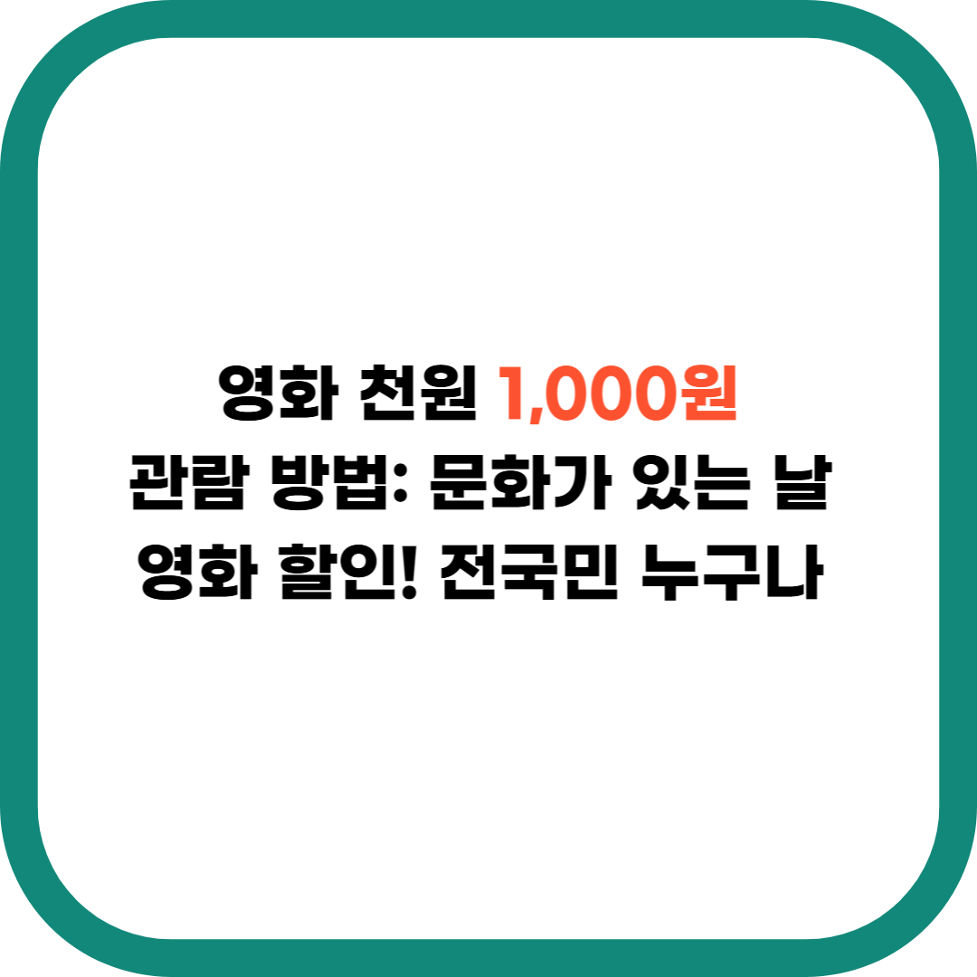 이 포스팅에서는 영화 천원 1,000원 관람 방법과 주의사항, 문화가 있는 날 중복 할인 팁까지 모두 정리해 드립니다.