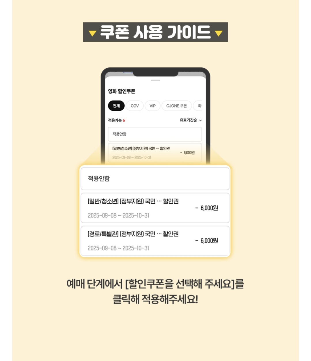 - 사용 방법: CGV 예매 시 ‘정부지원 할인권’ 선택