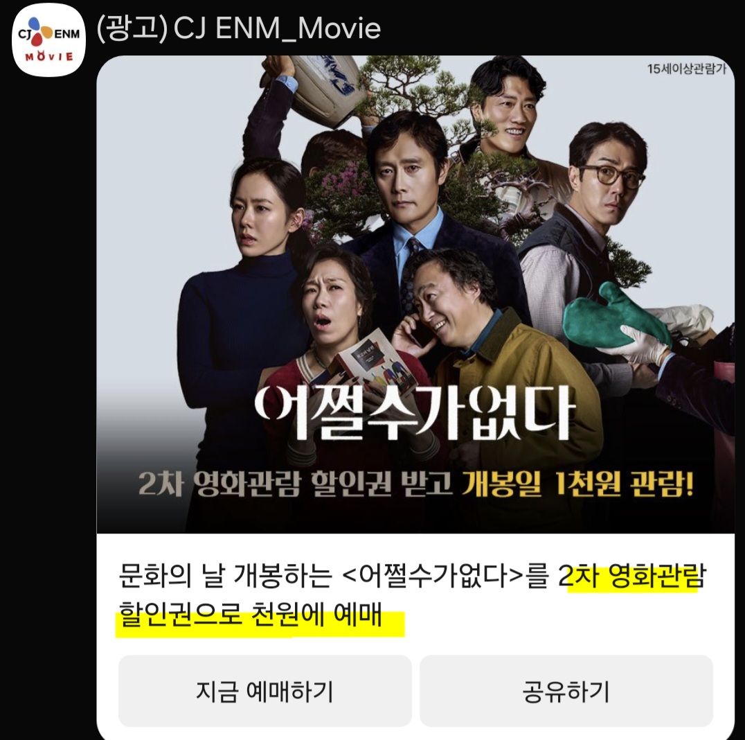 3. CGV에서 <어쩔수가없다> 1,000원에 보는 방법 요약