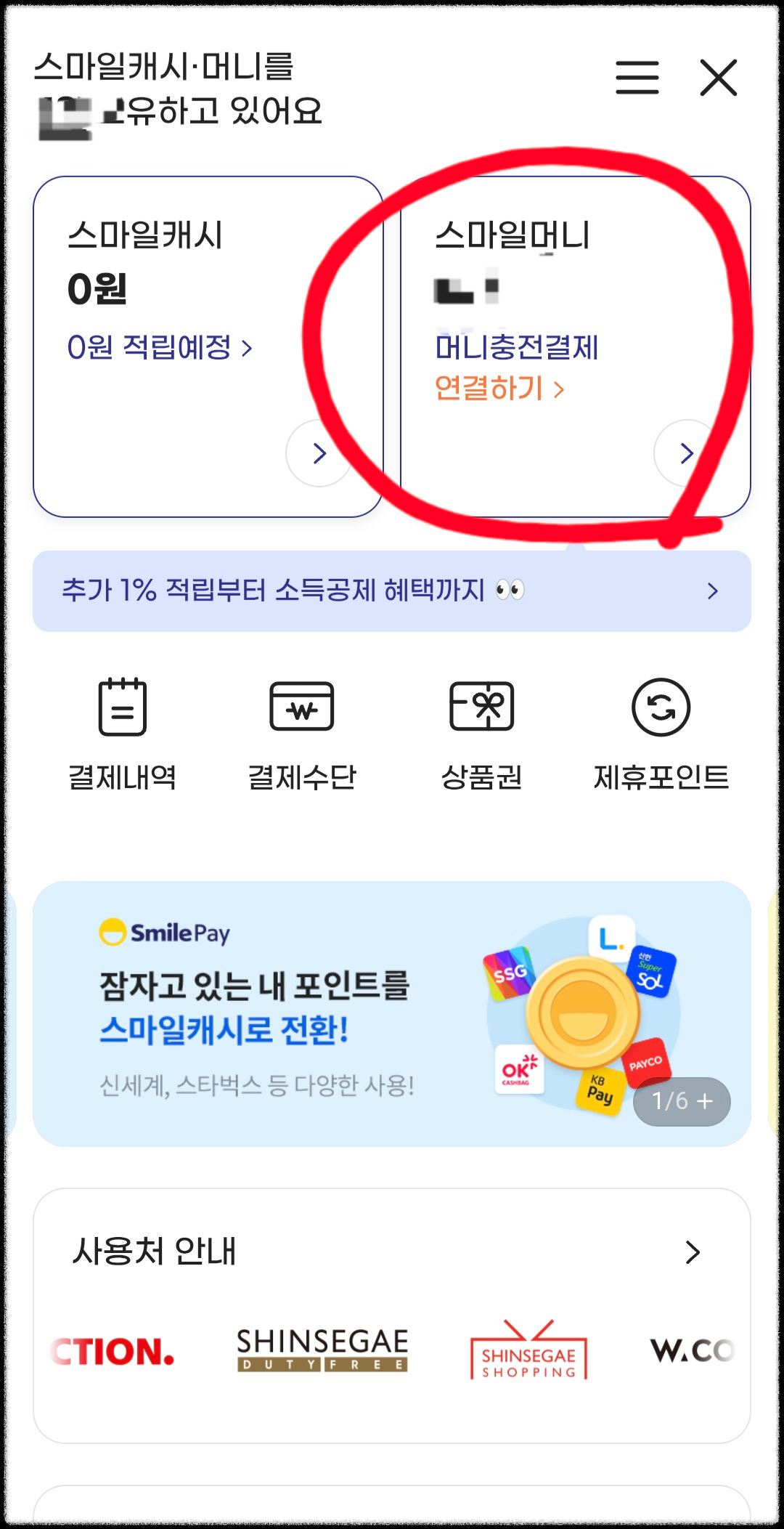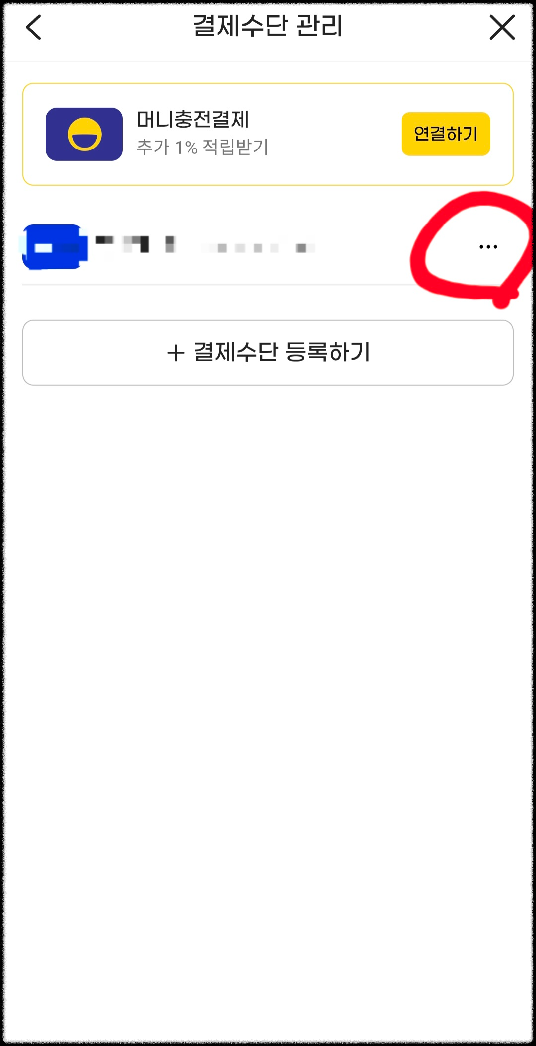 스마일머니 → 등록된 카드정보 우측 [점 3개 아이콘] 클릭 → [삭제]