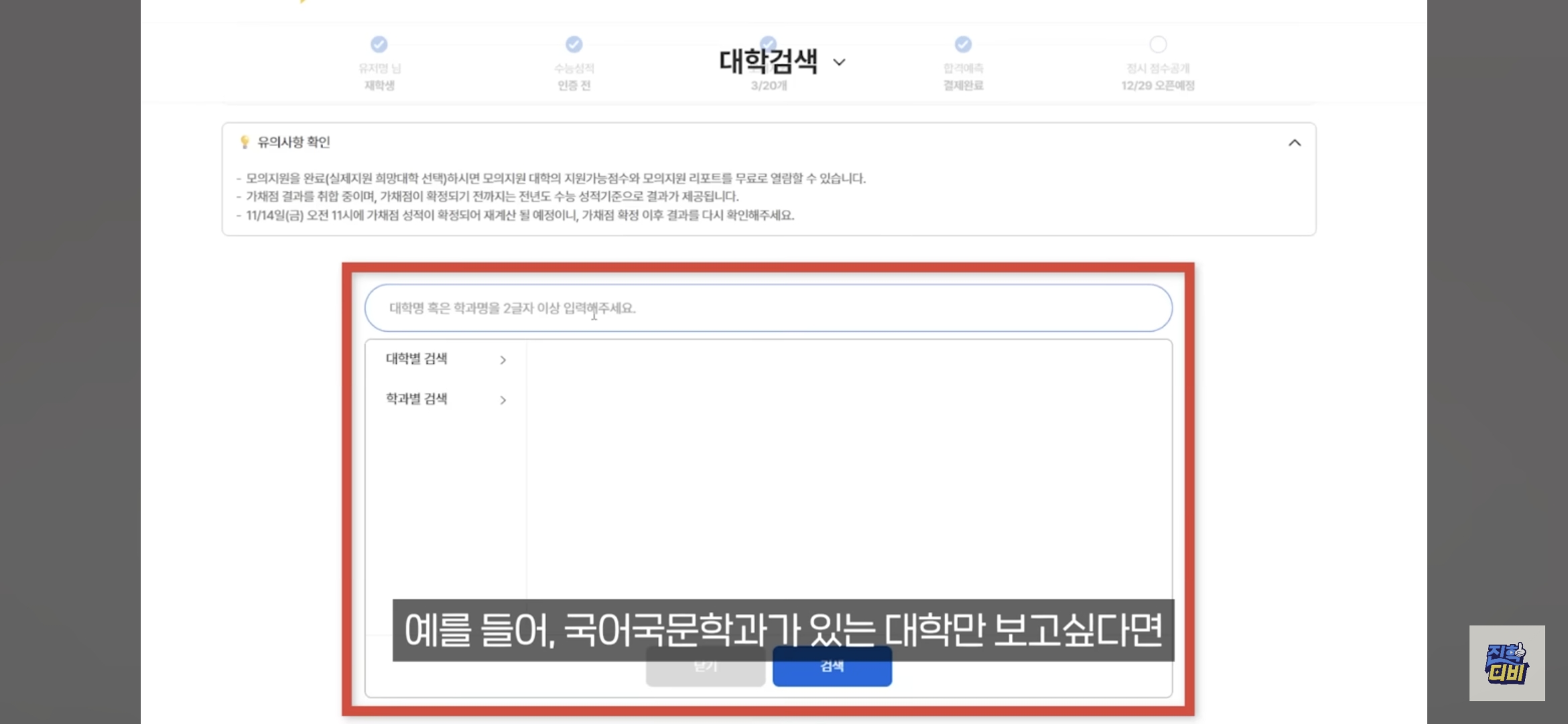 | 대학 검색 | 대학명 or 학과명으로 직접 검색 가능 |