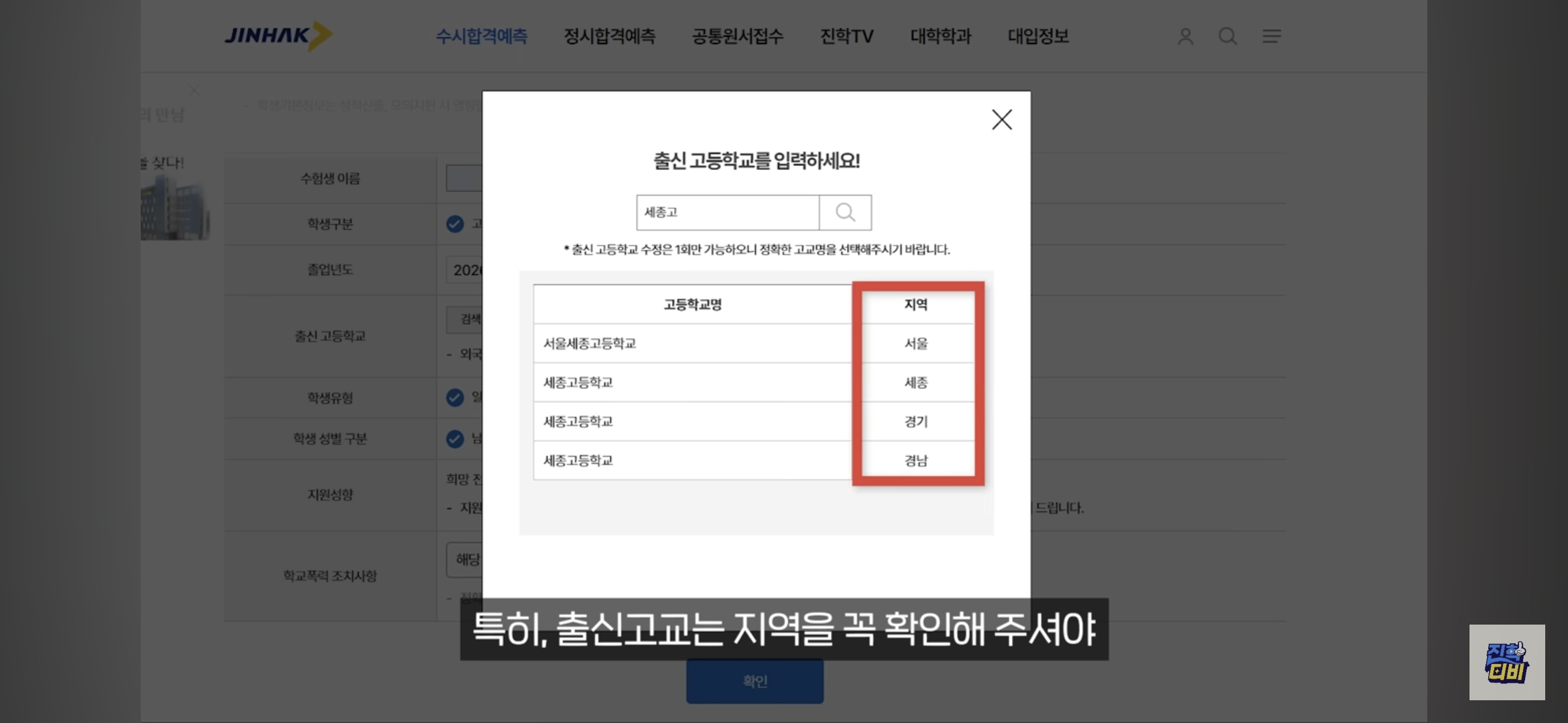 - 특히 출신 고교의 지역 선택은 지역 인재 전형 반영에 중요합니다.