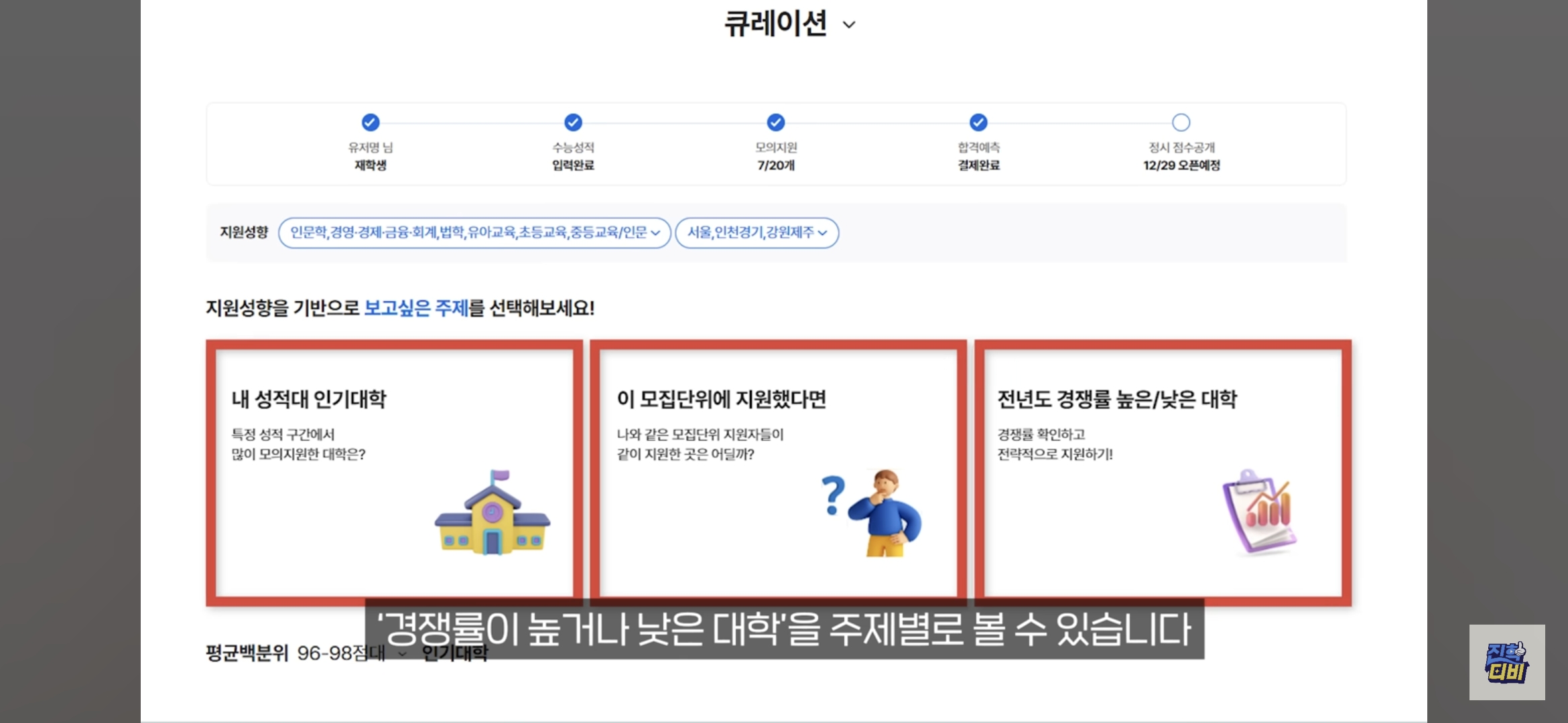| 큐레이션 | 인기 대학, 경쟁률 등 주제별 대학 추천 |
