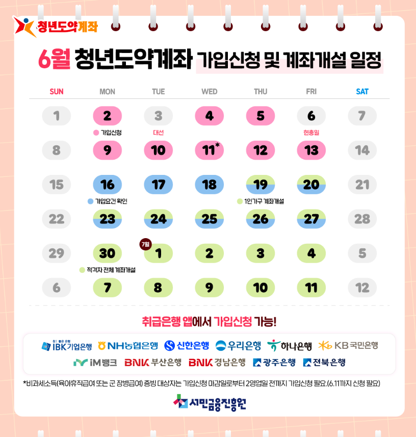 7. 2025년 6월 청년도약계좌 가입신청 및 계좌개설 일정