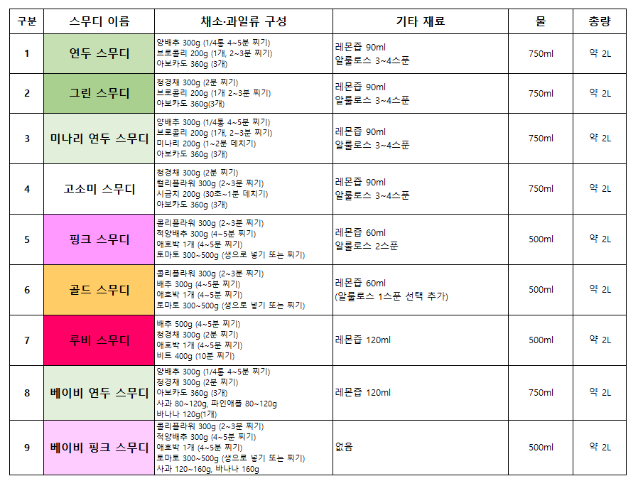 다양한 스무디를 만들수 있어 좋아요. 연두 스무디가 제일 손쉬워서 매일 먹고 있는데 몸이 달라지는 걸 느끼게 됩니다.