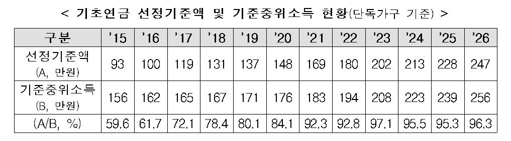 ✔ 2026년 노인 단독가구, 월 소득인정액 247만 원 이하면 기초연금 받습니다!
