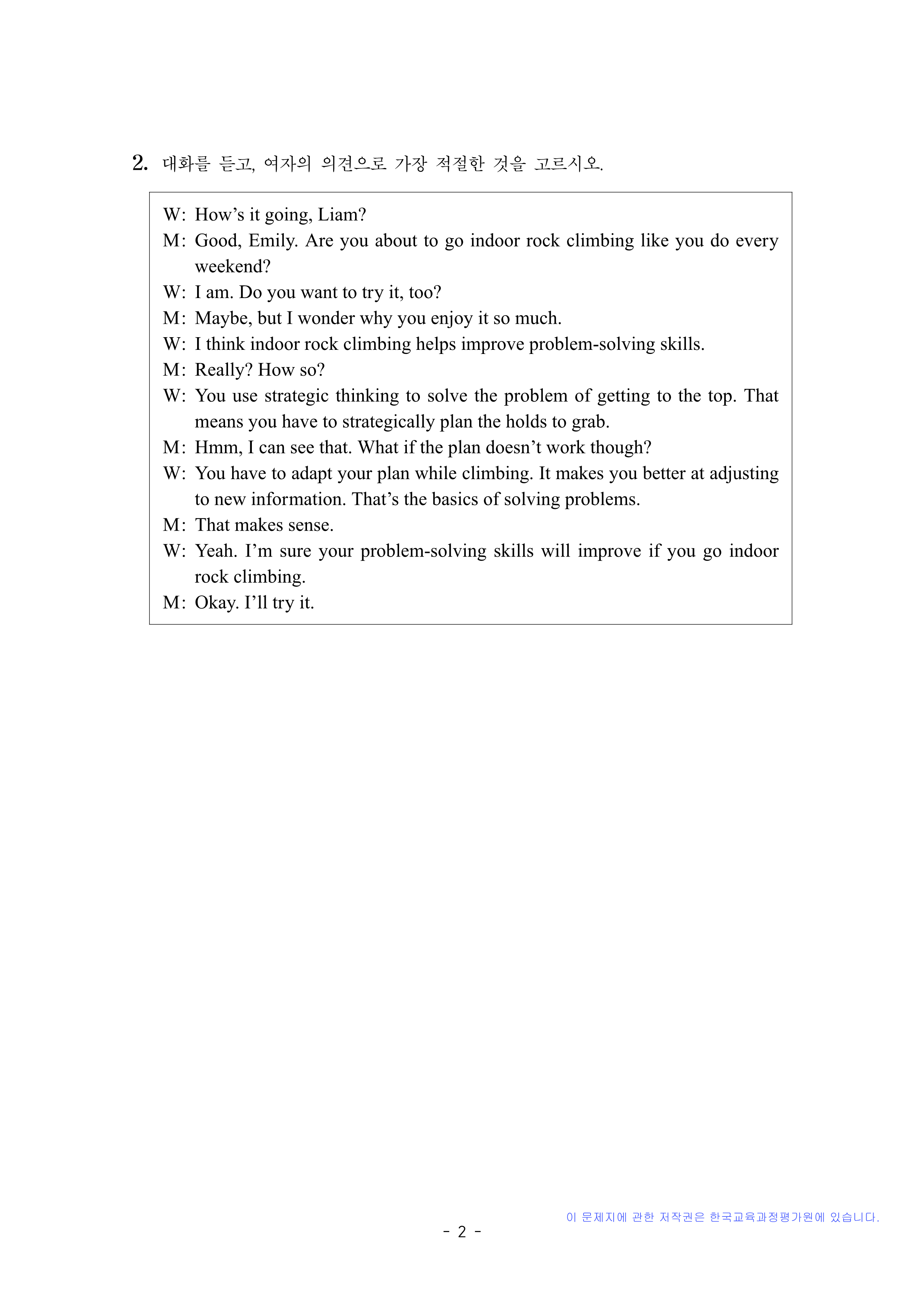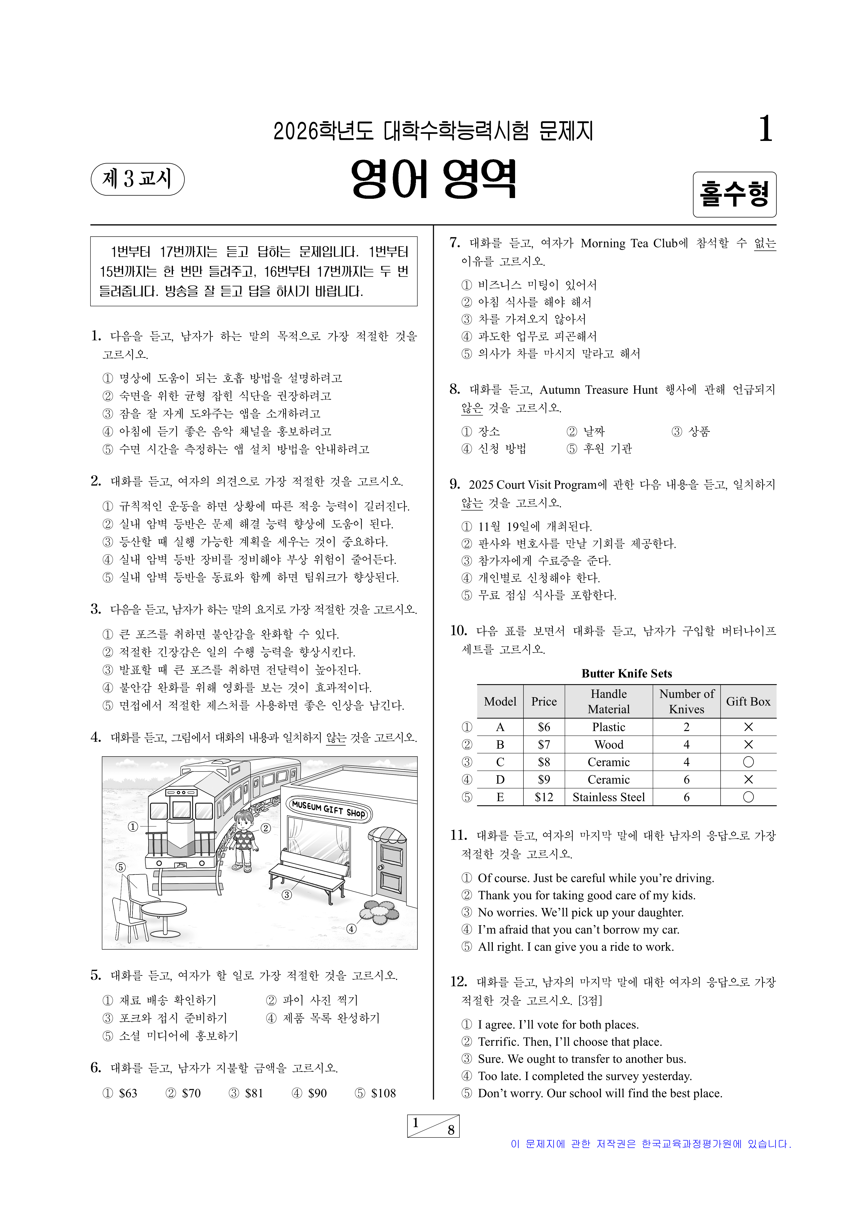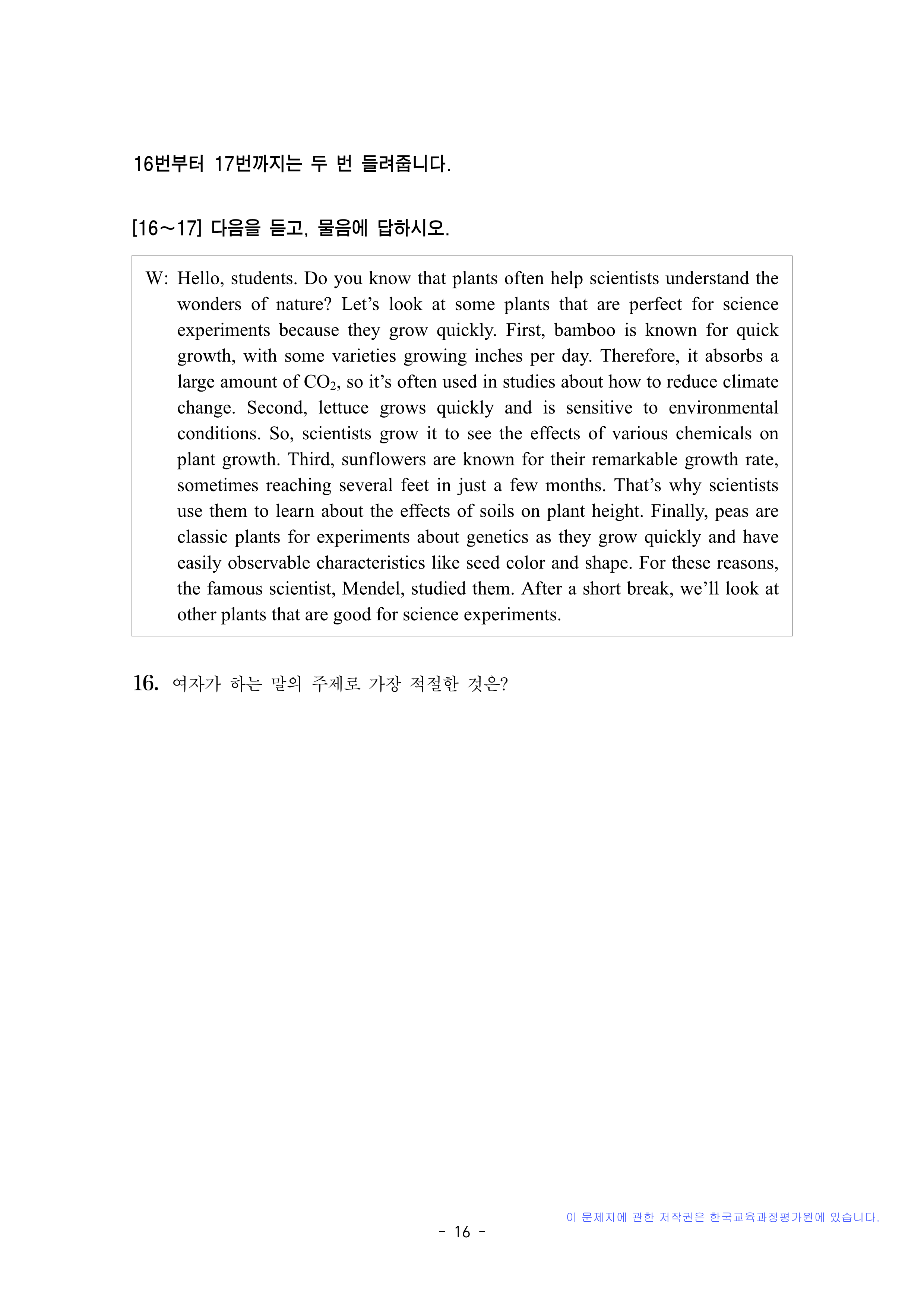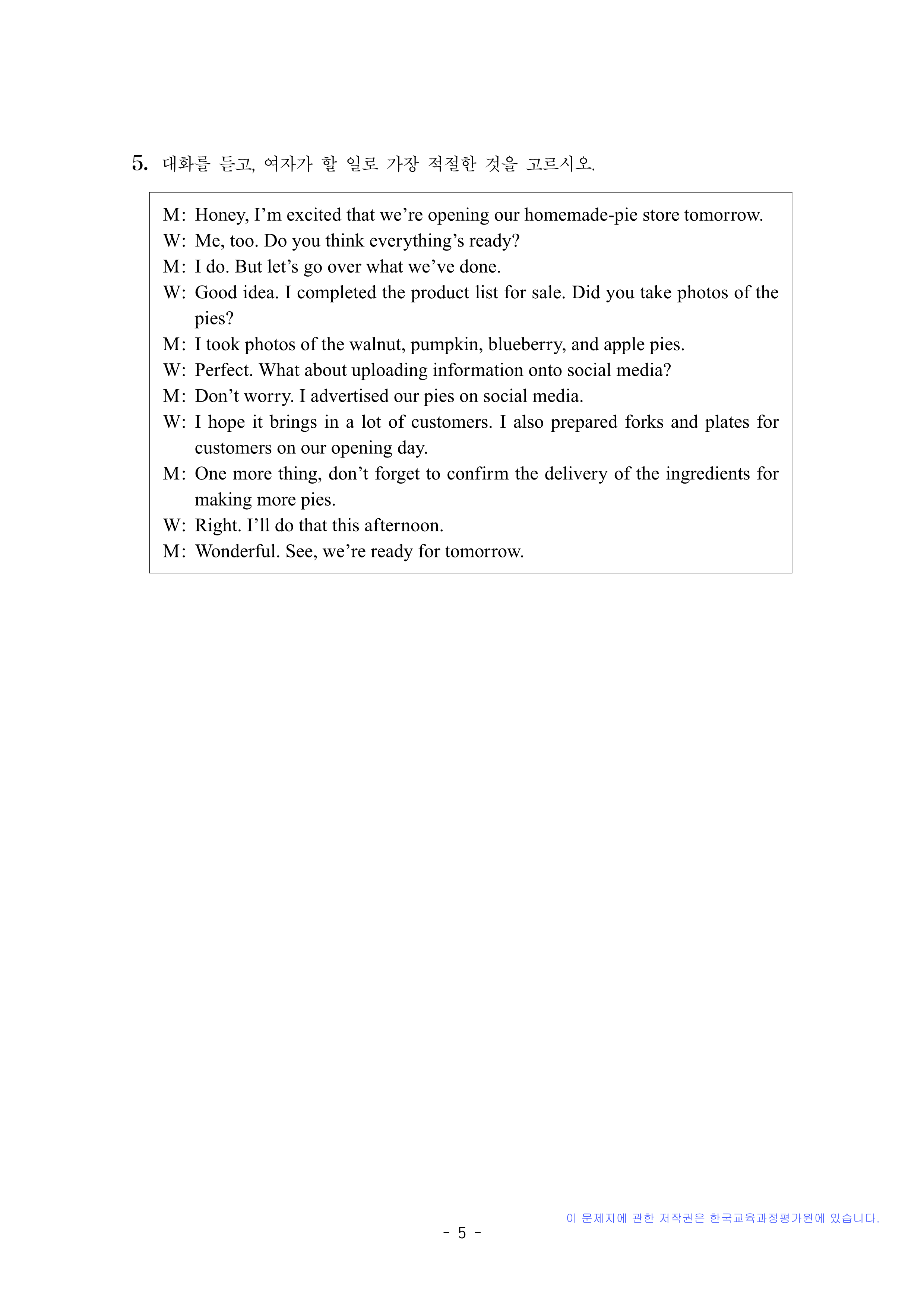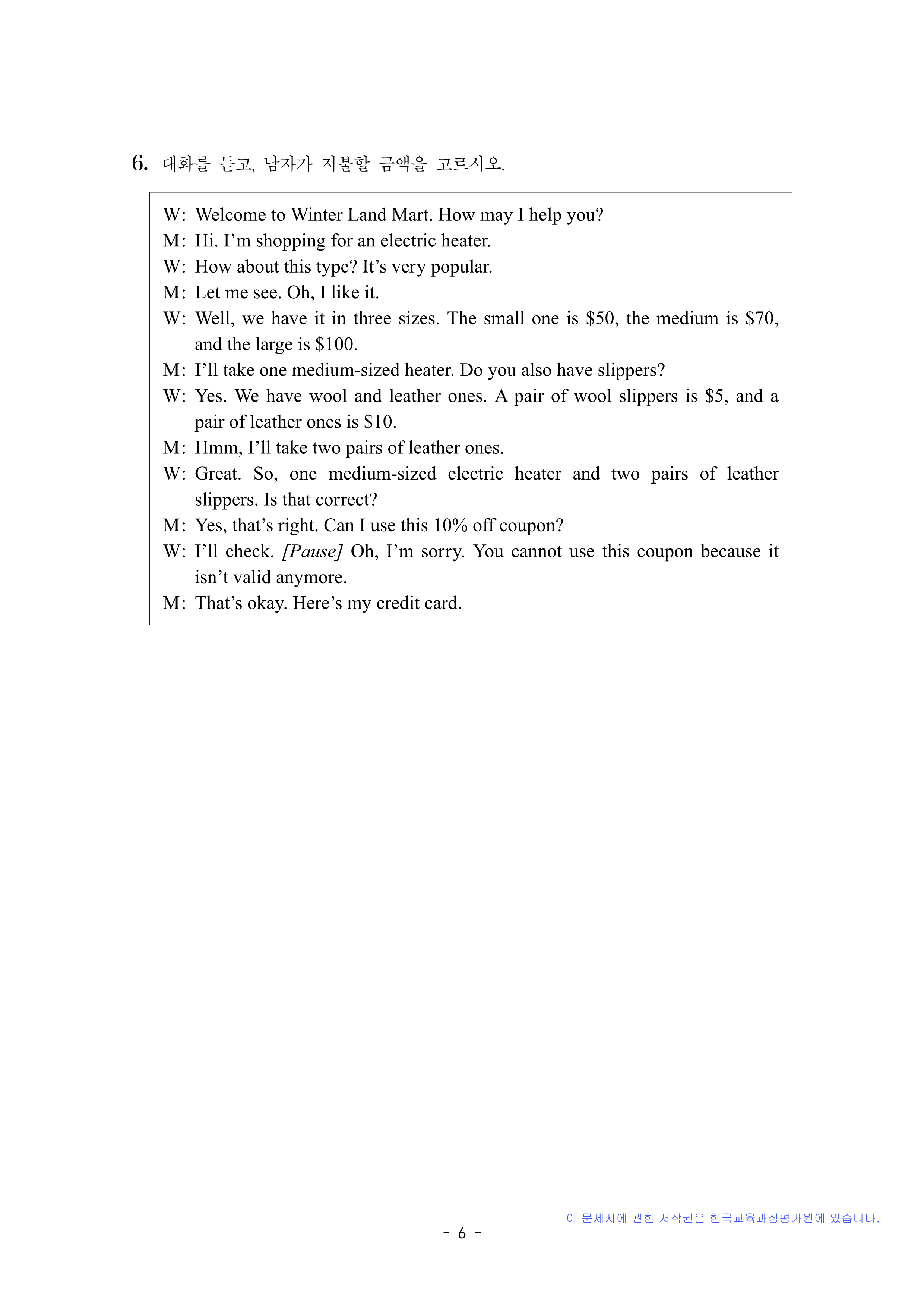 영어 듣기평가 대본