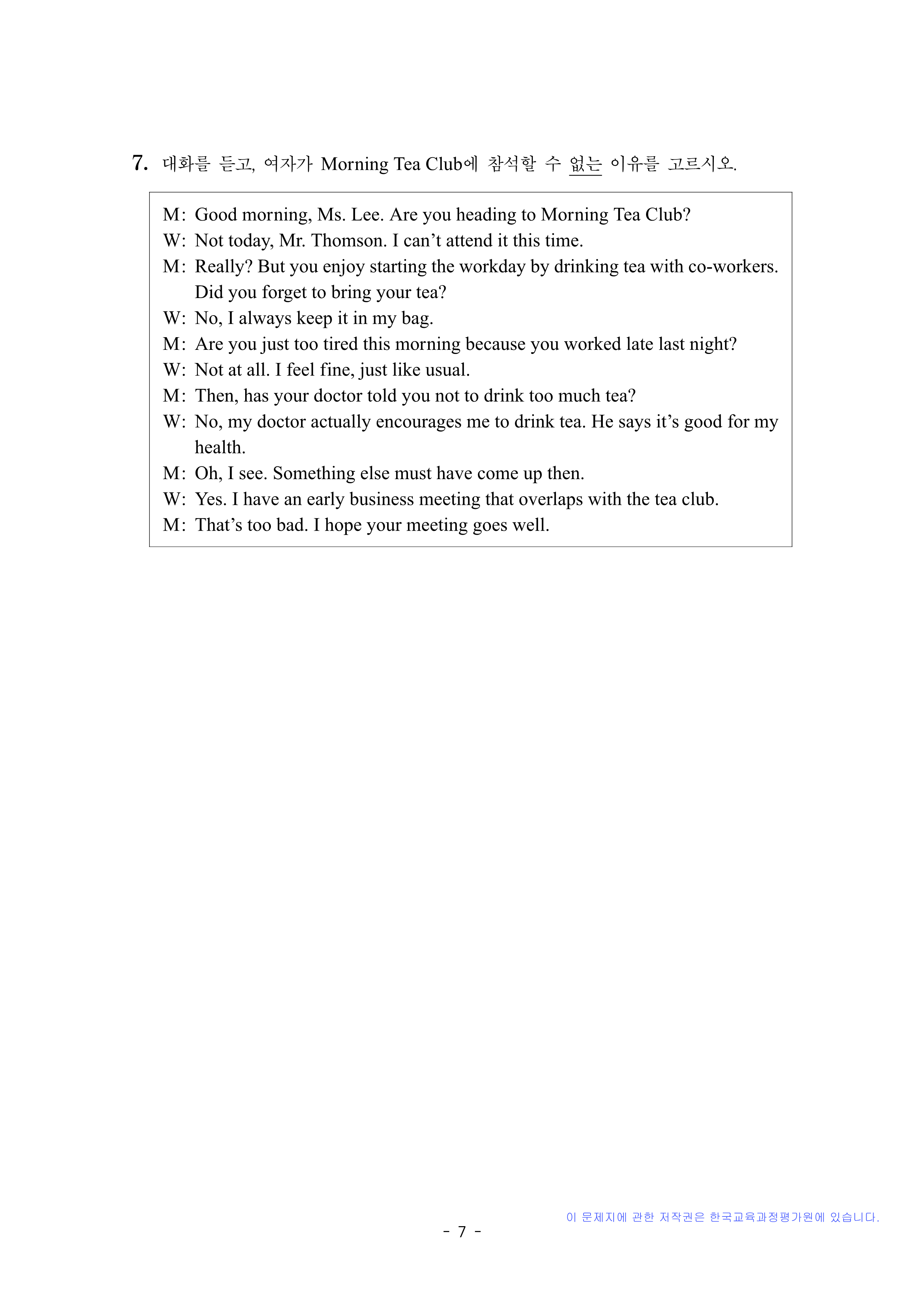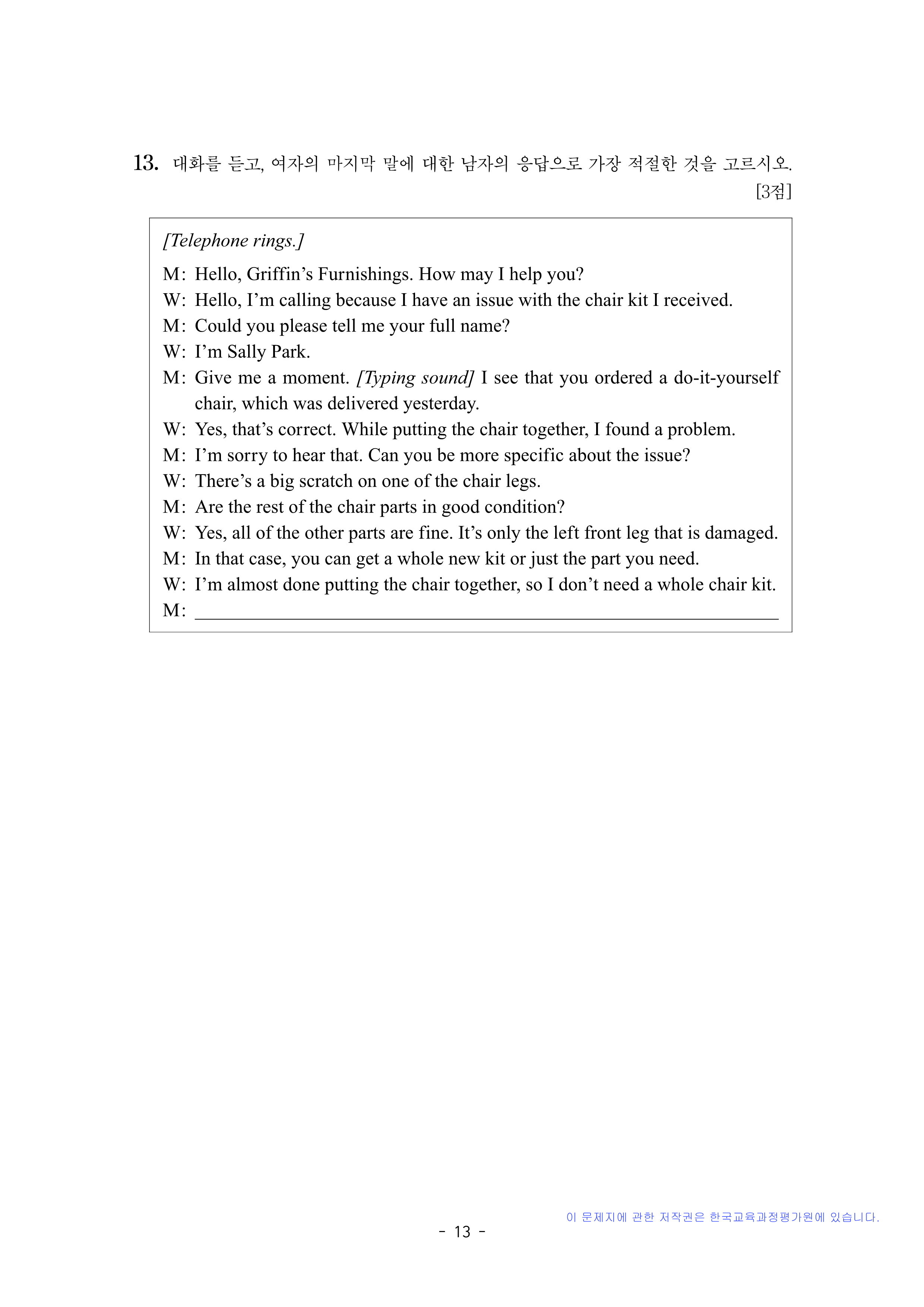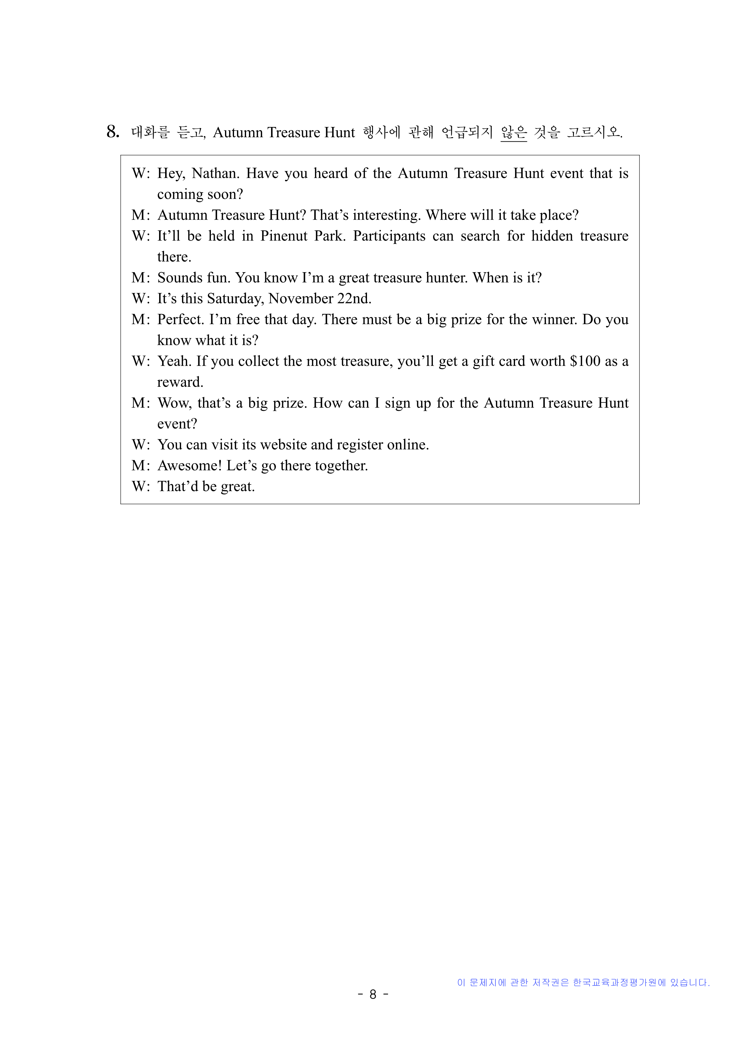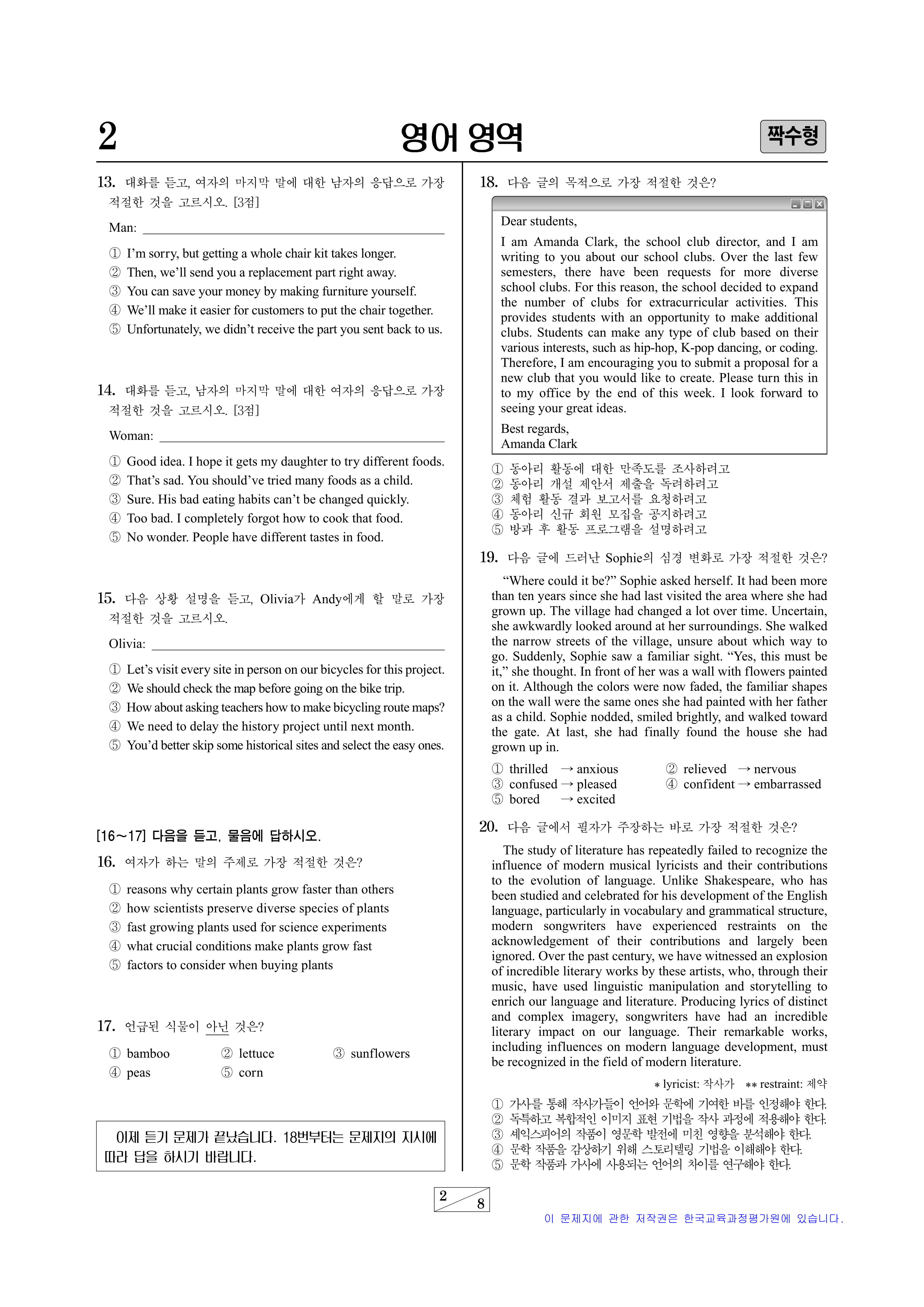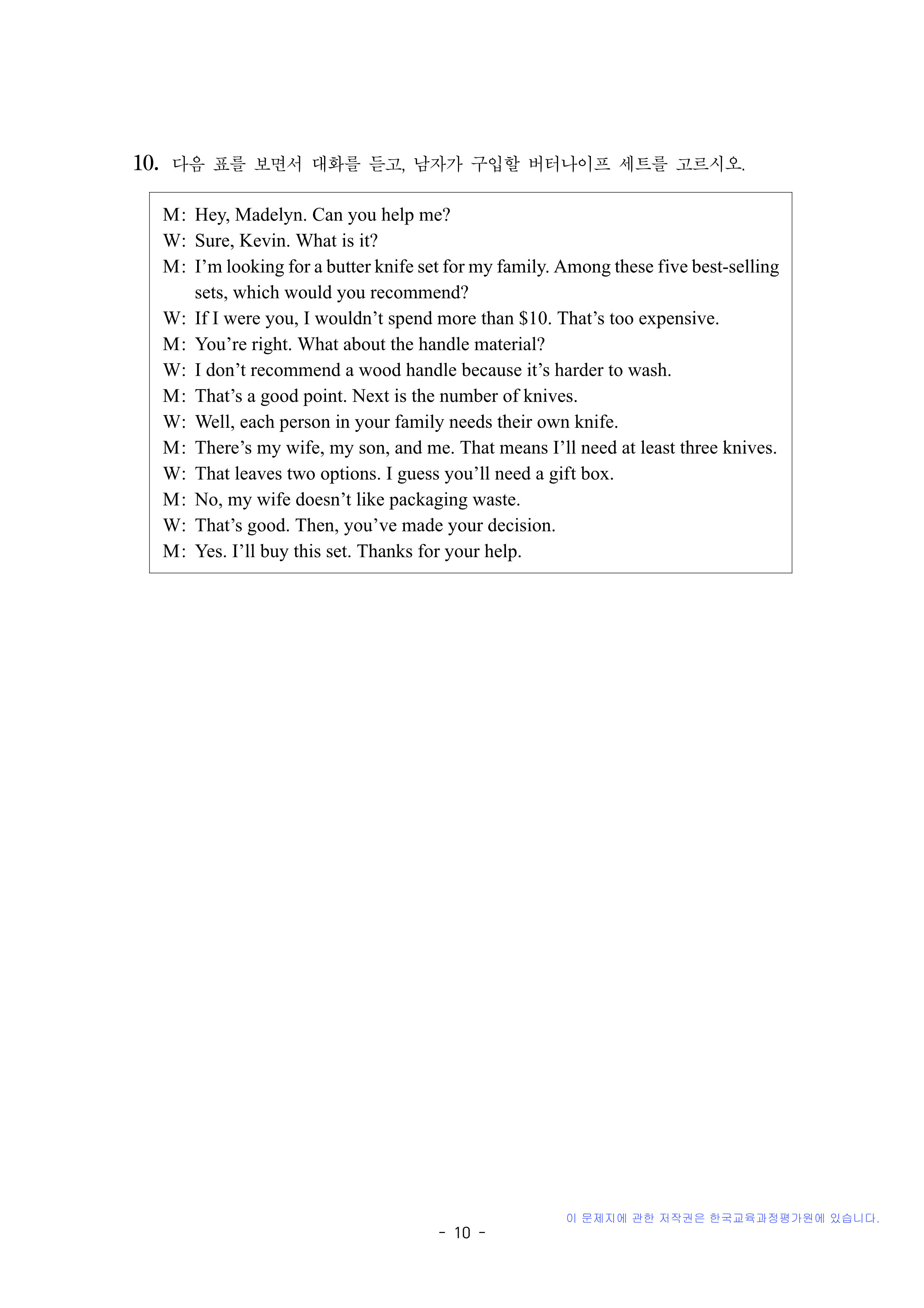 영어 듣기평가 대본