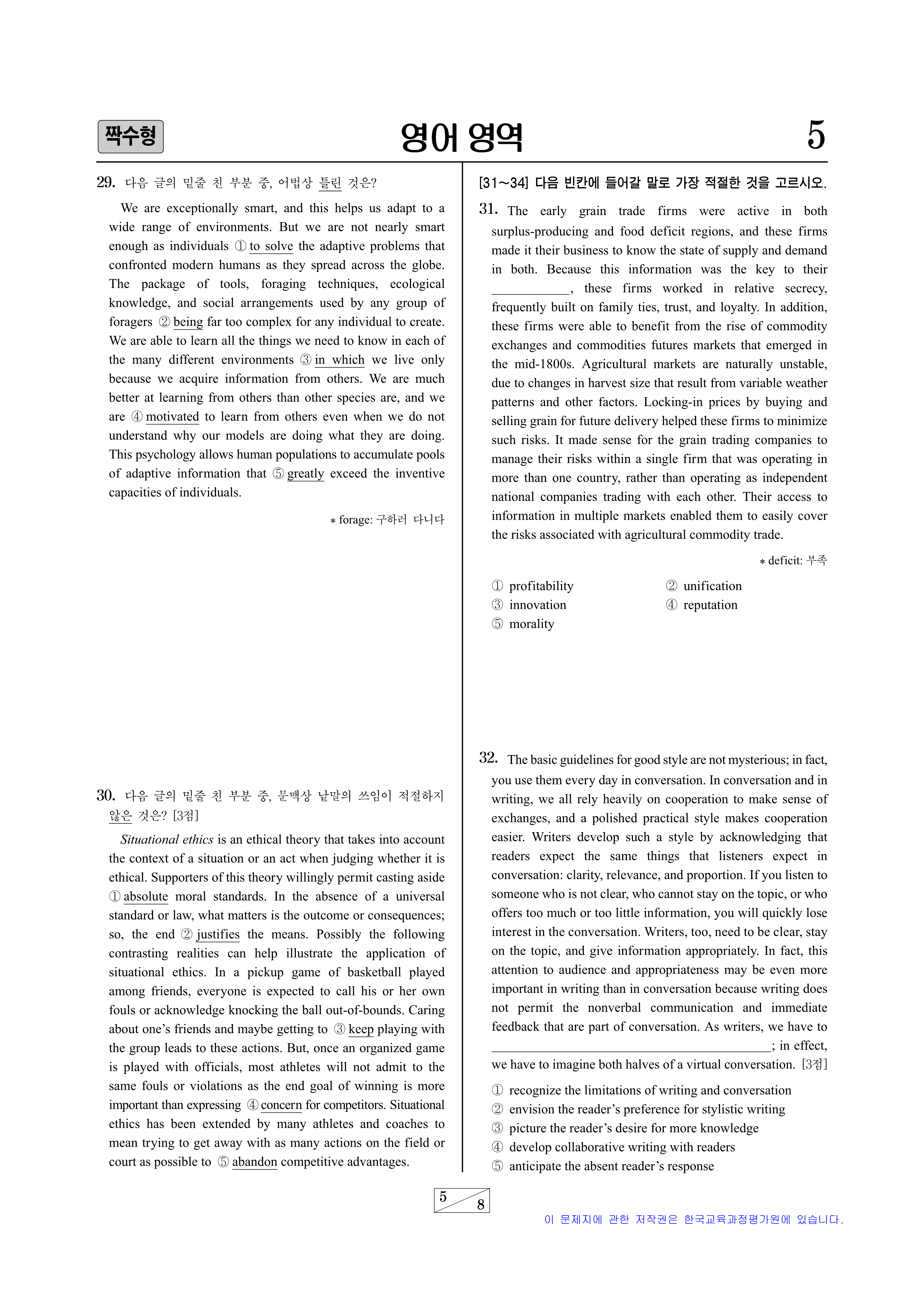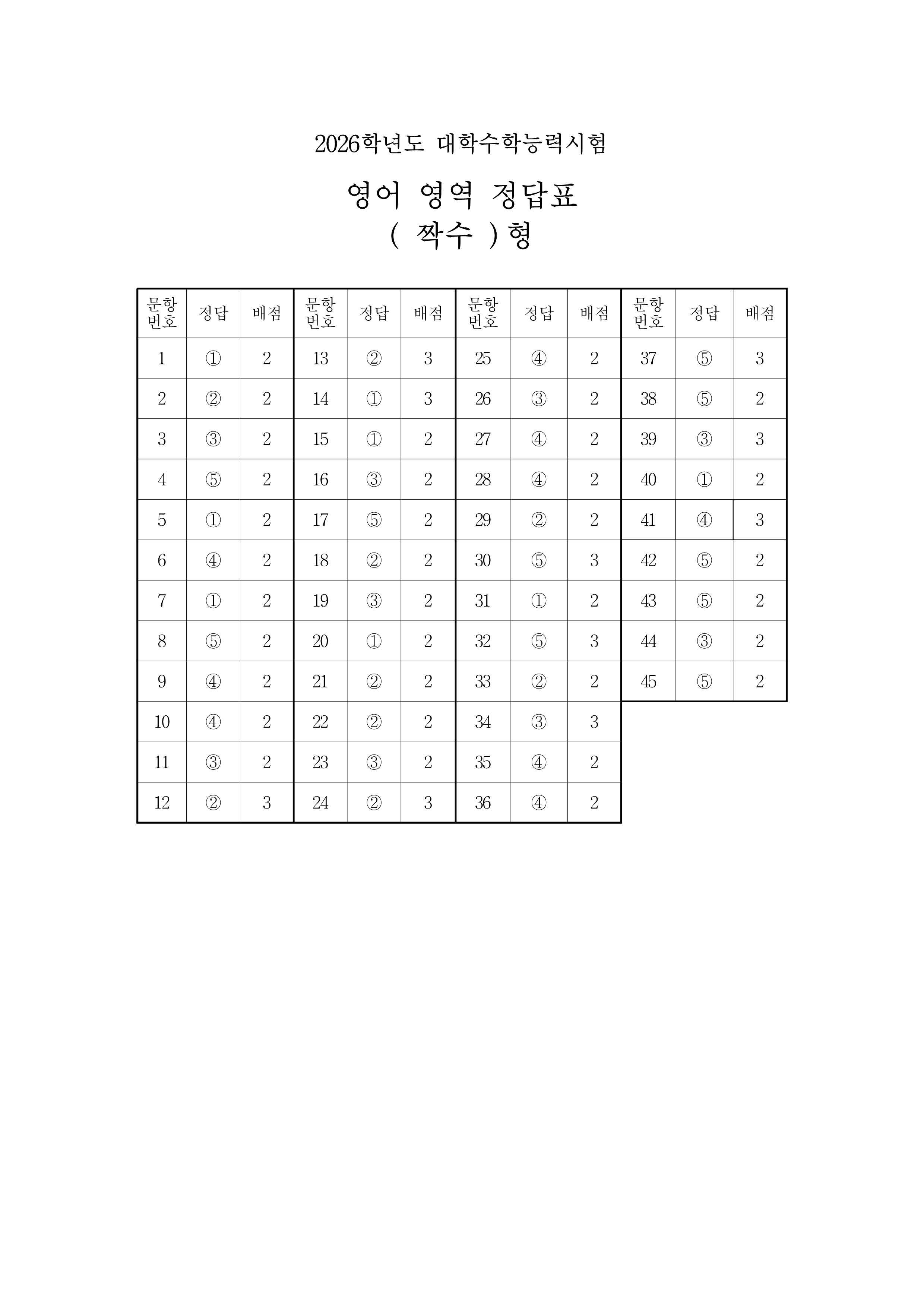 2. 2026 수능 영어 영역 정답지