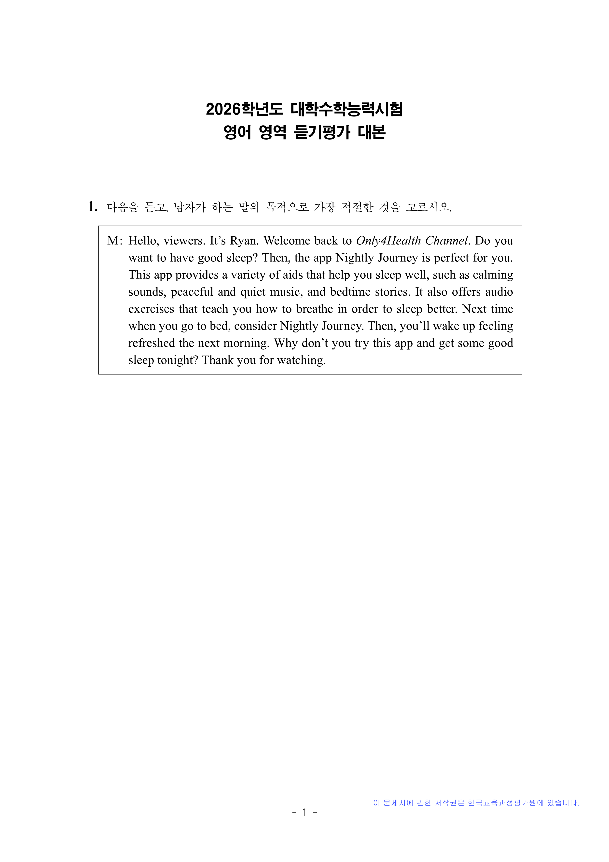 1. 2026 수능 영어 문제지