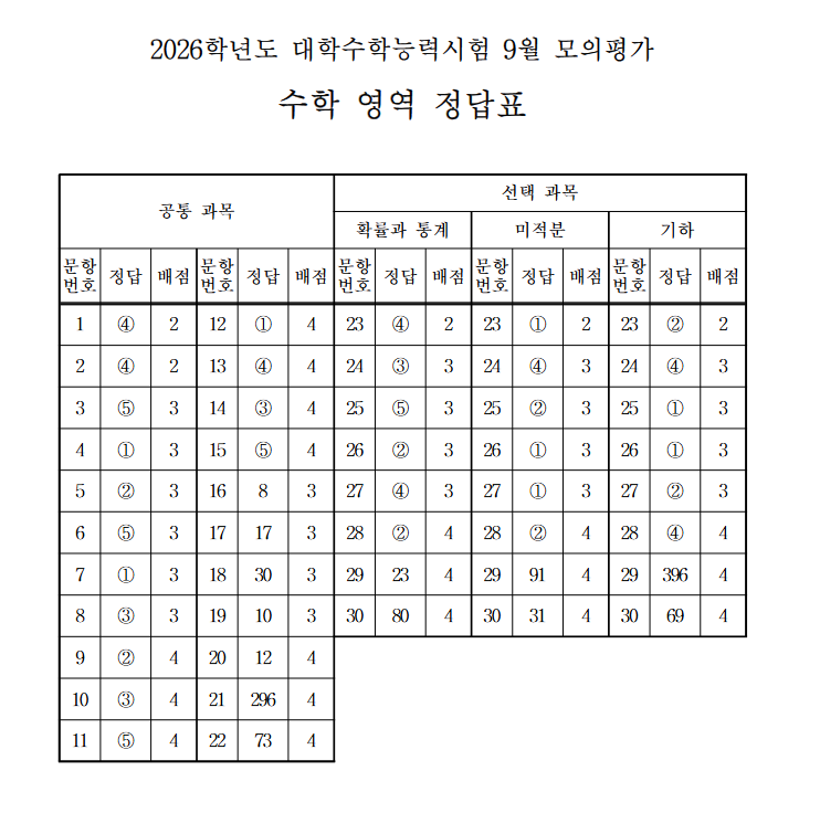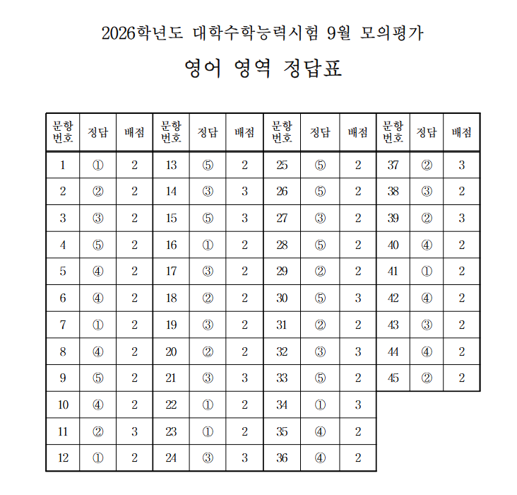 - 현재(25.09.03. 오후 5:54) 영어까지 답안지가 공개되었습니다.