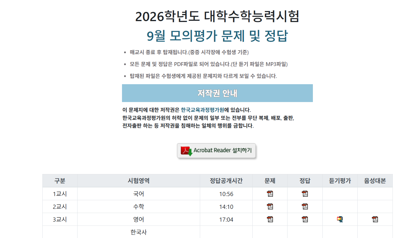 📂 2026 9모 답안지 다운로드 팁