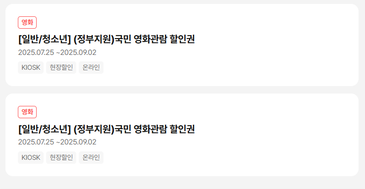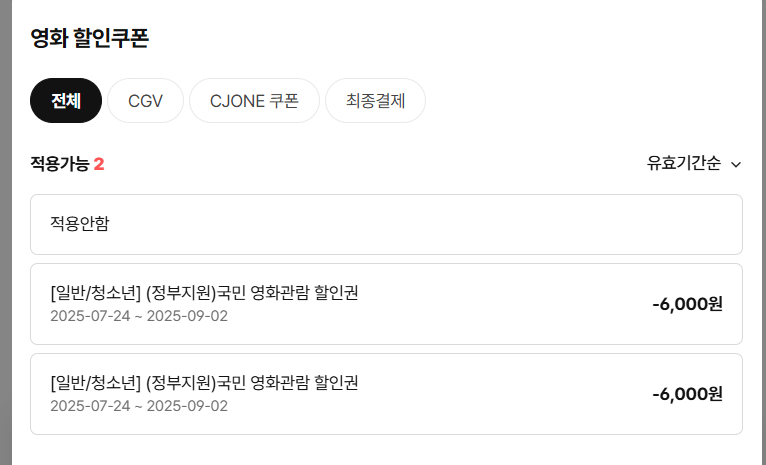 - 내 쿠폰함에 정부지원 국민 영화관람 할인권이 들어있어요.
