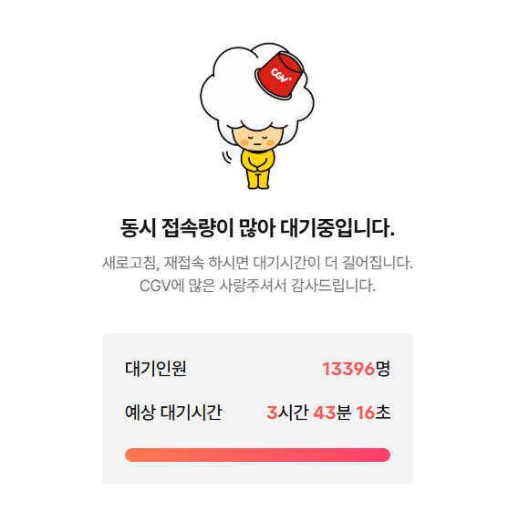 오늘 2025년 7월 25일(금), 문화체육관광부와 영화진흥위원회가 영화관 입장권 6천원 할인권 450만 장을 배포한다고 발표하자마자, CGV·롯데시네마·메가박스·씨네큐브 등 주요 영화관 공식 누리집과 모바일 앱 접속이 마비됐습니다. 일부 사이트에는 대기 인원 10만 명 이상, 예상 대기 시간 14시간 이상이라는 안내까지 나타났고, 모바일 앱은 "시스템 오류로 현재 이용할 수 없습니다”라는 창이 뜰 정도였습니다.